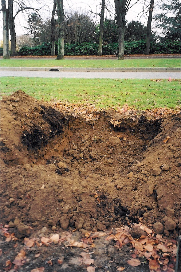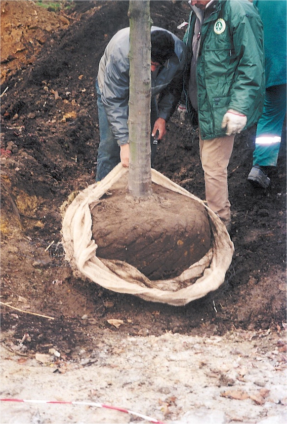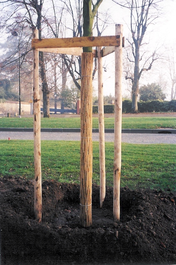 Creusement des fosses de plantation Apport de terreau Mise en place et alignementPlantation Cuvette d'arrosage, protection du tronc et tuteurage