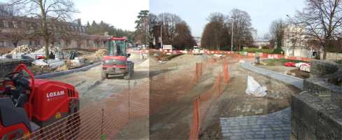- nouveau dessin et réfection des chaussées, aménagement piétonnier de la place.