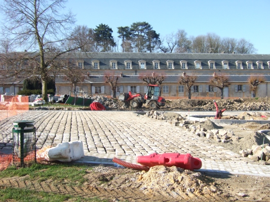 L'ensemble des chaussées de la "patte d'oie" ainsi que la chaussée prolongeant la rue des Capucins jusqu'à la rue Terre-Neuve ont été refaites en gros pavés anciens. Les trois allées de la "patte d'oie" sont piétonnières, l'allée centrale n'étant ouverte aux voitures qu'exceptionnellement. Les pelouses ont été refaites et sont protégées par des bordures de granit, comme dans l'avenue du Château. Aucun stationnement n'est possible sur la place dans la perspective de l'avenue. L'éclairage est assuré par des bornes basses, ainsi que par des lampadaires coté avenue.